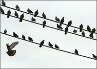 | 一般的な対処方法ですが、大変な手間を必要とし、侵入された場合、逆に鳥を天敵から守る安全な環境にしてしまいます。 | 最初は鳥も警戒する場合がありますが、慣れてしまうという欠点があり、やがて危険と判断しなくなり、効果は継続しません。 |