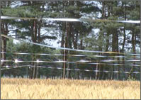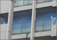 | 止まる事を不可能にする狙いの対策ですが、近年では針の隙間を利用して巣を作る実例もあり、逆効果になっています。 | 鳥の飛行を困難にする効果は期待できますが、テグスの上に鳥が止まってしまうこともあり、侵入を防げません。 |