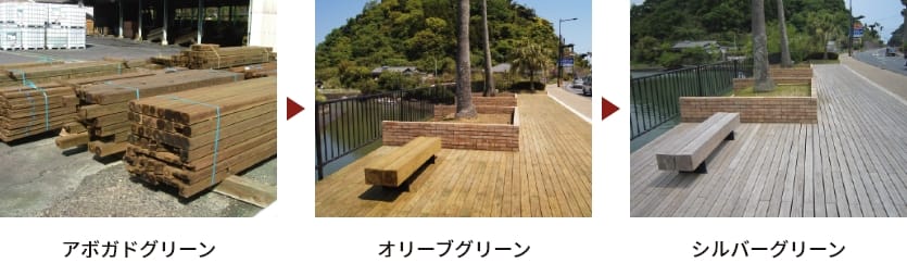 40年間その国産木材の高耐久化を図り、外構施設や資材として活用して参りました。
